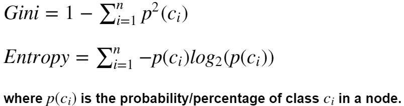 Gini Index: measure how often a randomly chosen element from the set would be incorrectly labeled. It means an attribute with lower Gini index should be preferred.